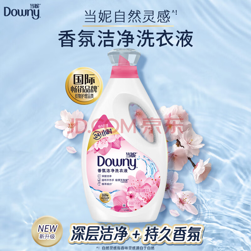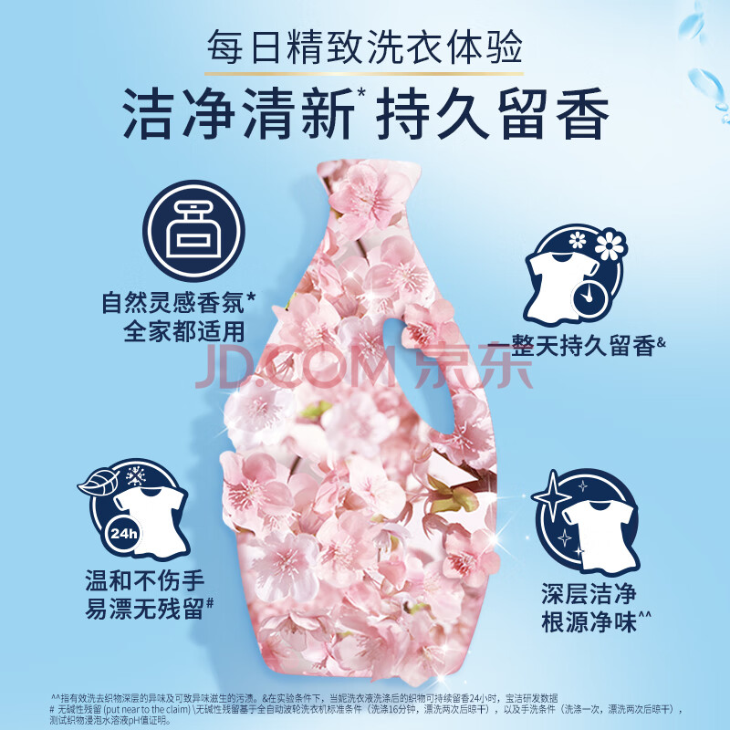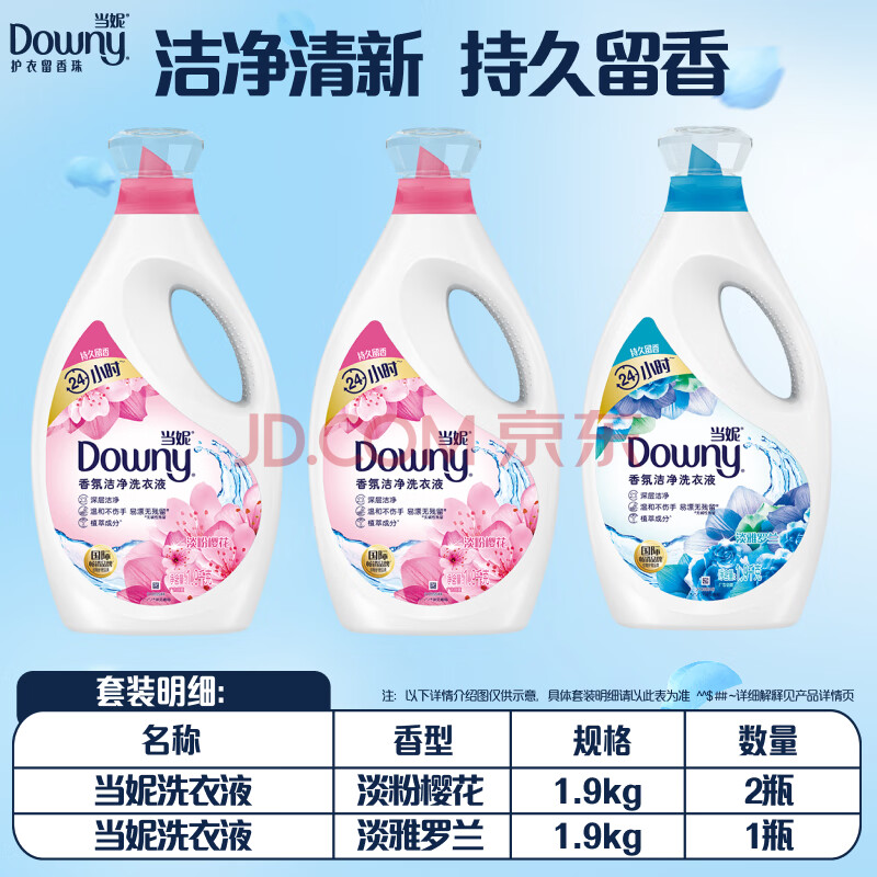 商品相册:当妮香氛洗衣液淡粉樱花+淡雅罗兰11.4斤装(1.9kg*3瓶) 持久留香第