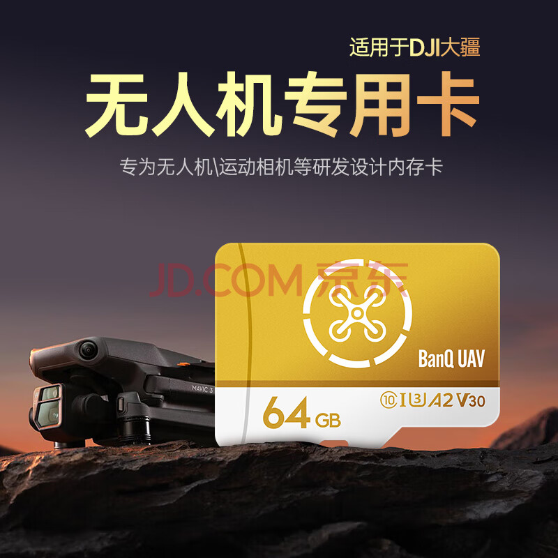 商品相册:banq 64GB TF(MicroSD)适用于DJI大疆无人机内存卡 U3 A2 V30 4K 运动相机\游戏机\监控专用存储卡第