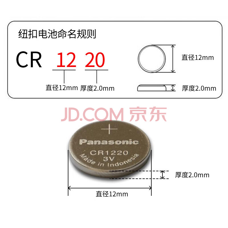 商品相册:松下(Panasonic)CR1220进口纽扣电池电子3V适用汽车钥匙遥控器CR1220 五粒第