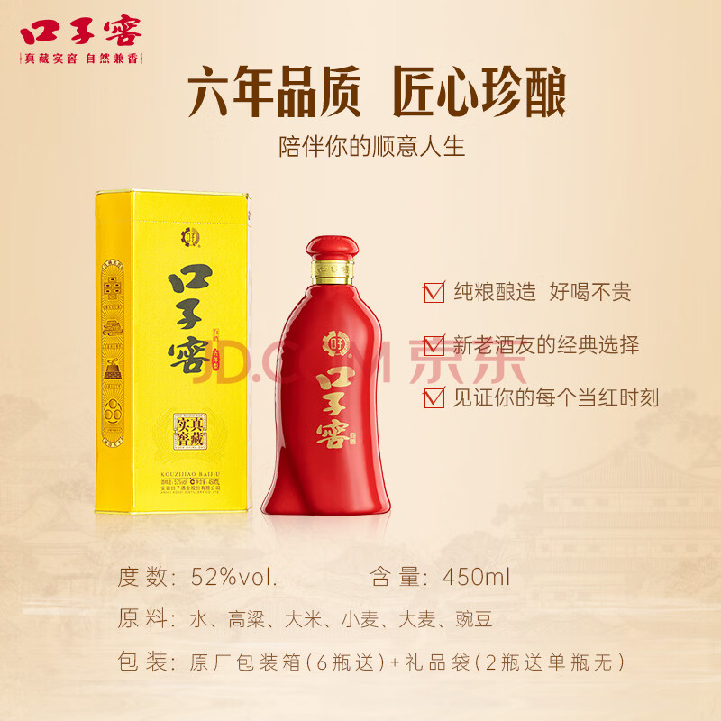 商品相册:口子窖六年型 兼香型白酒 52度 450ml*6瓶 整箱装 婚庆喜宴 送礼第