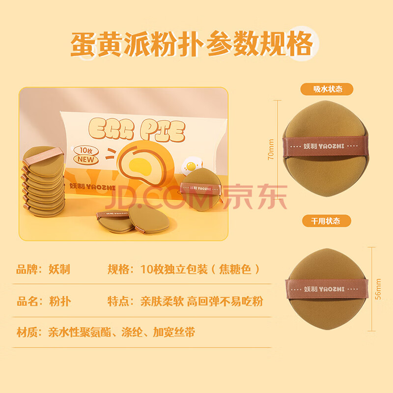 商品相册:妖制新版蛋黄派10枚装粉扑上妆服帖不易吃粉生日礼物粉底液专用粉饼扑第