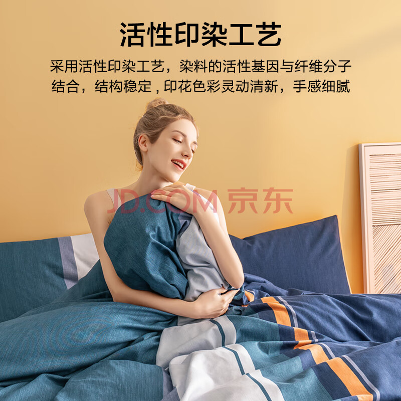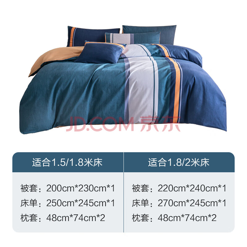 商品相册:京东京造意式瓷磨四件套 A类抗菌100%纯棉磨毛 厚实保暖床上四件套床单款1.5米床 远山青黛第
