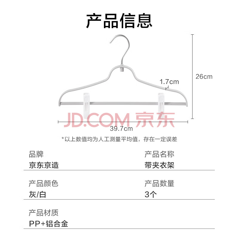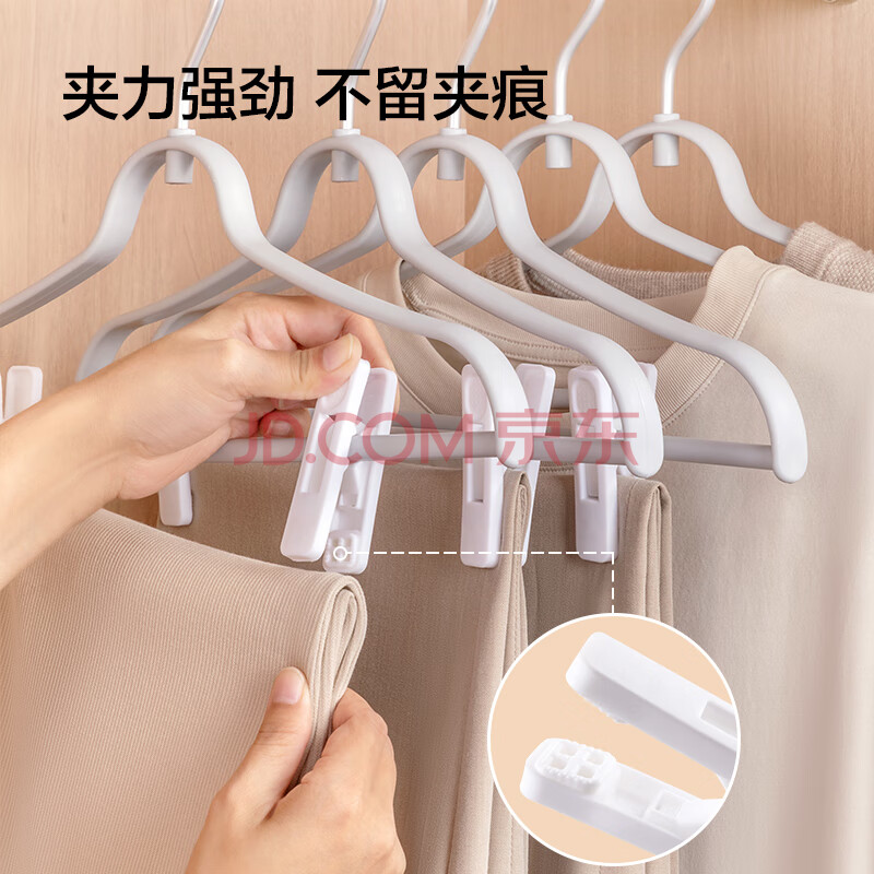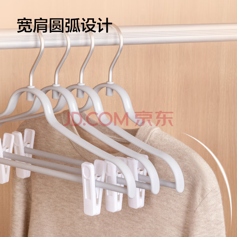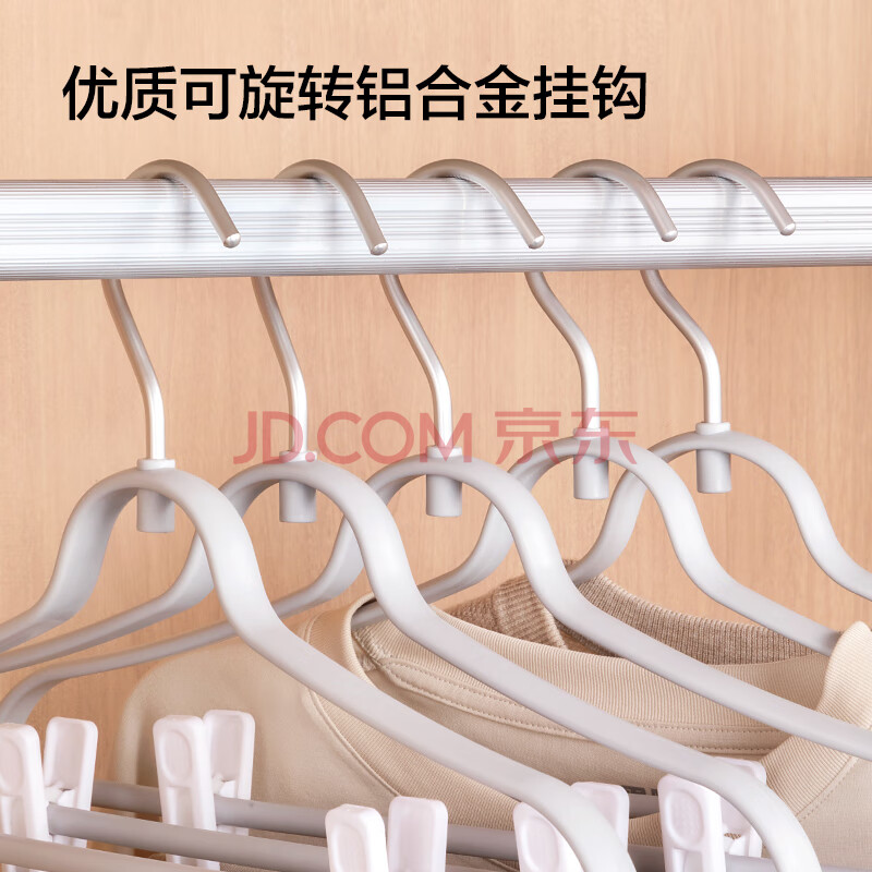 商品相册:京东京造 太空系列铝合金无痕裤夹晾衣架硅胶夹垫不伤衣物3支第
