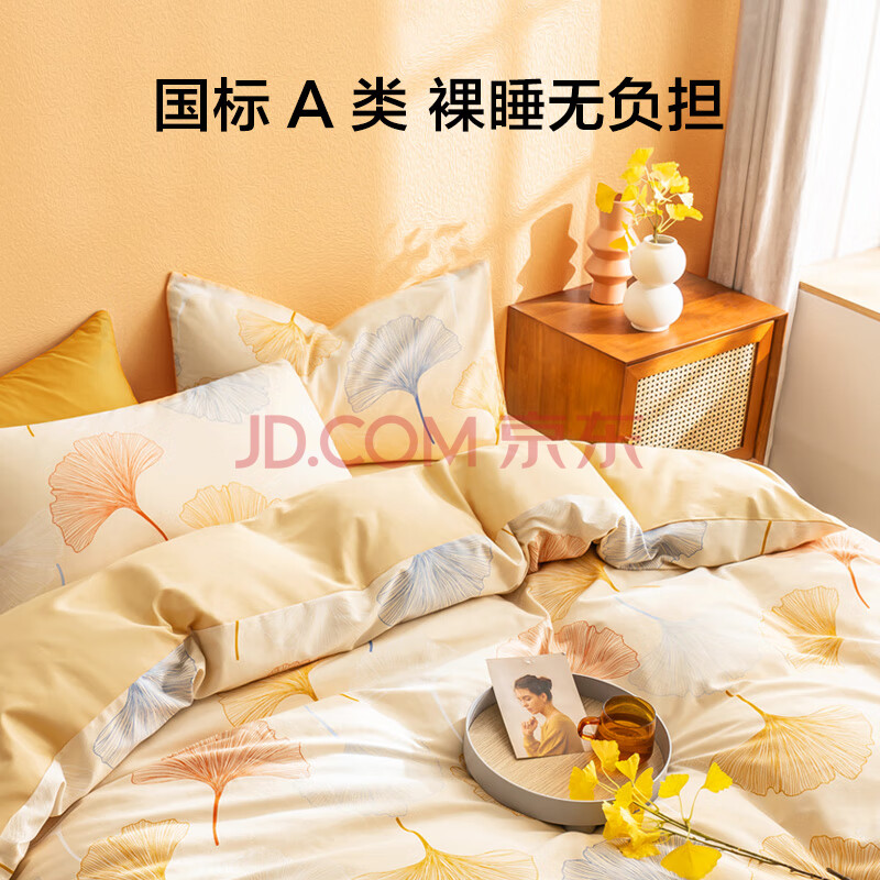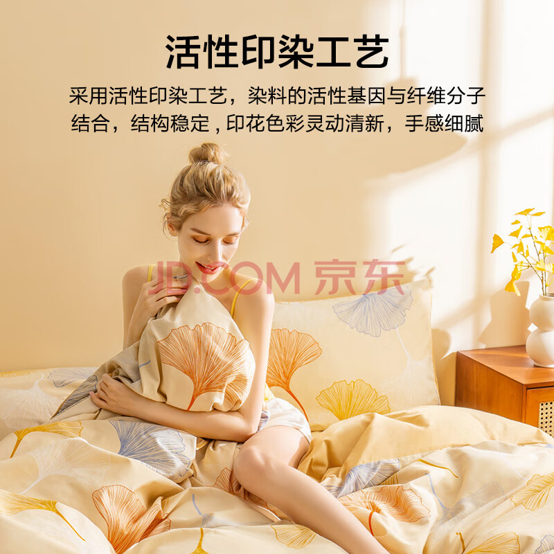 商品相册:京东京造意式瓷磨四件套 A类抗菌100%纯棉磨毛 厚实保暖床上四件套床单款1.5米床 染秋沁暖第