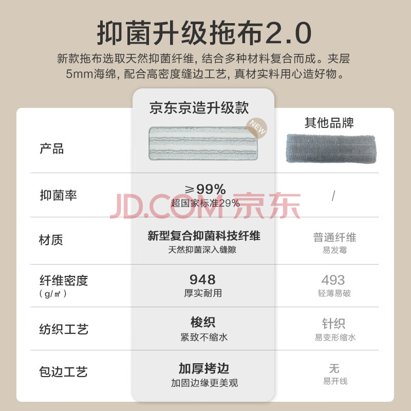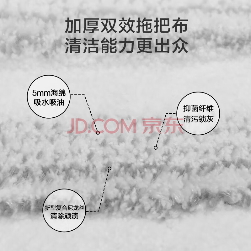 商品相册:京东京造抗菌升级替换拖布*3个 免手洗家用一拖净无水印 适配平板拖把36cm第