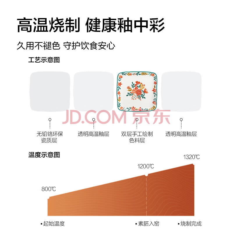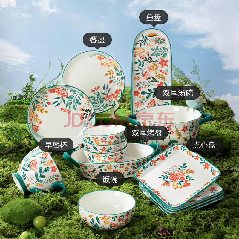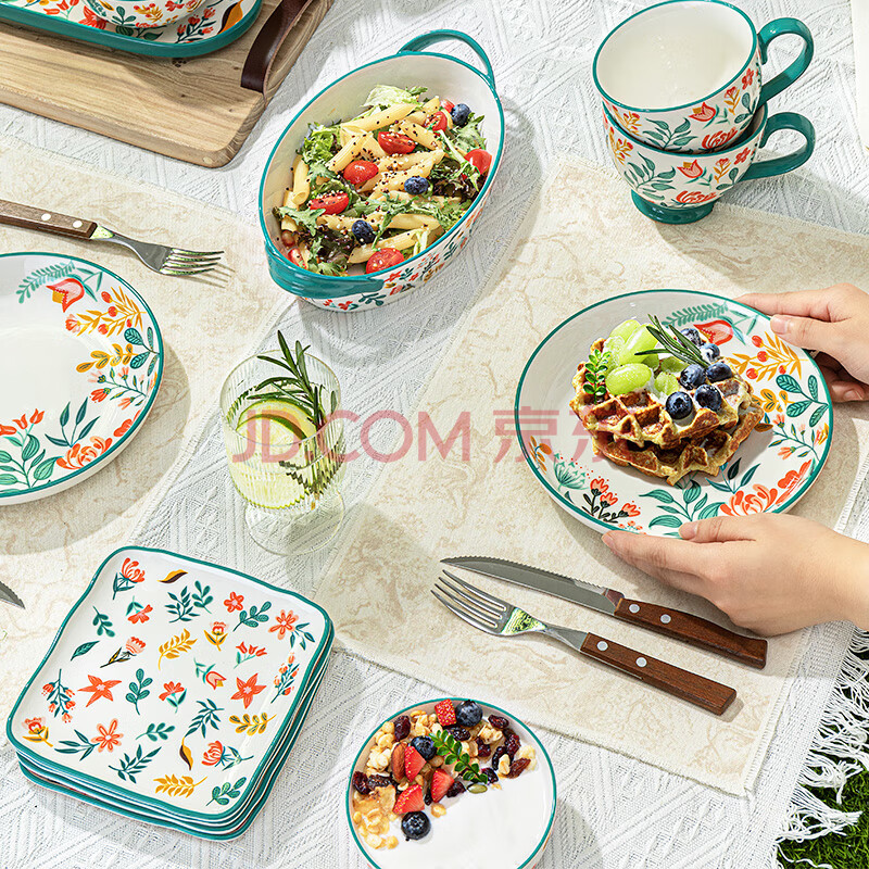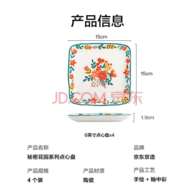 商品相册:京东京造 美式餐具套装 盘子碟子乔迁之喜陶瓷家用 美式点心盘6英寸*4第