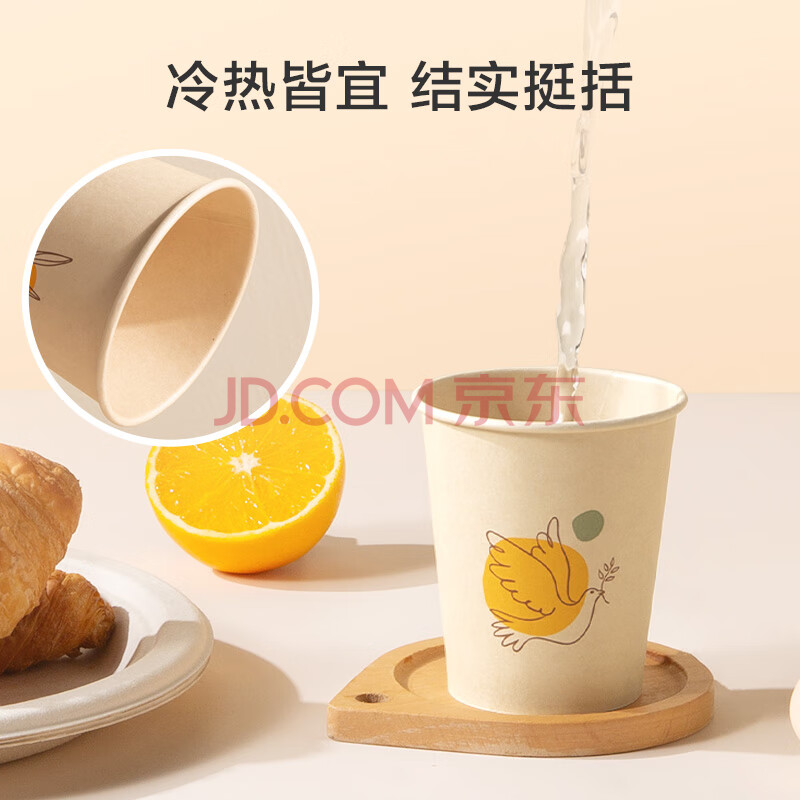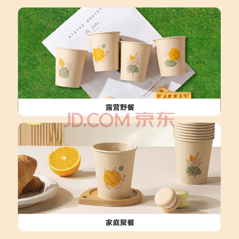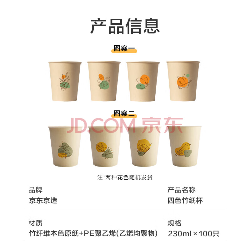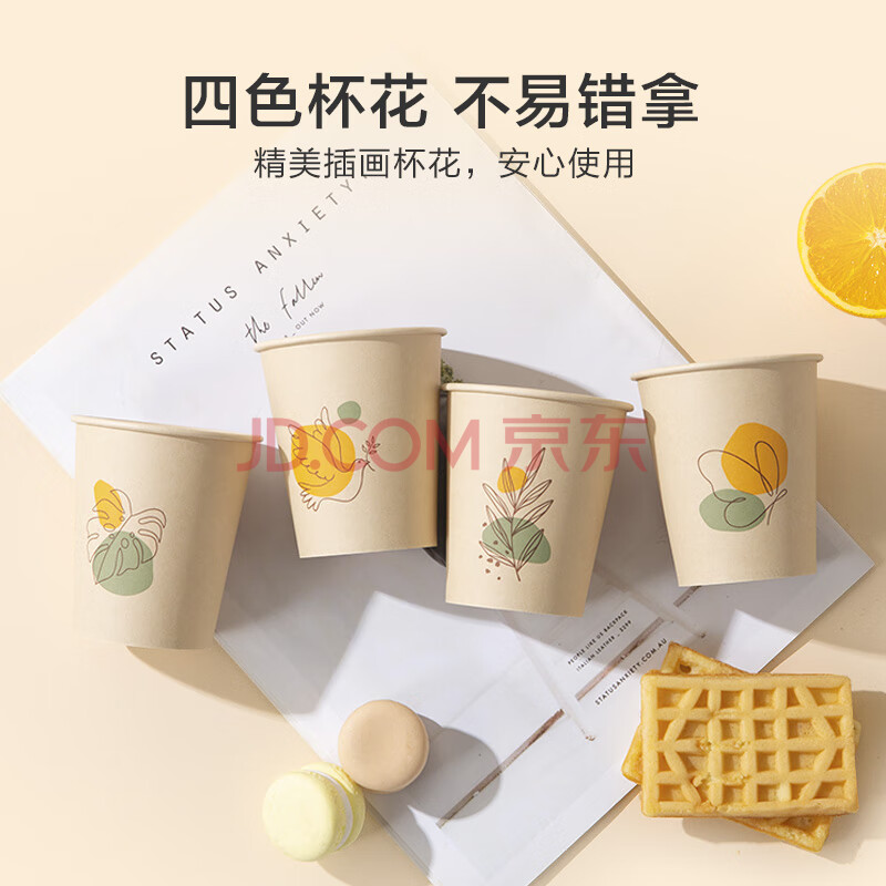 商品相册:京东京造 纸杯一次性杯子 加厚四色竹纤维烧烤露营家用水杯230ml【100只】第