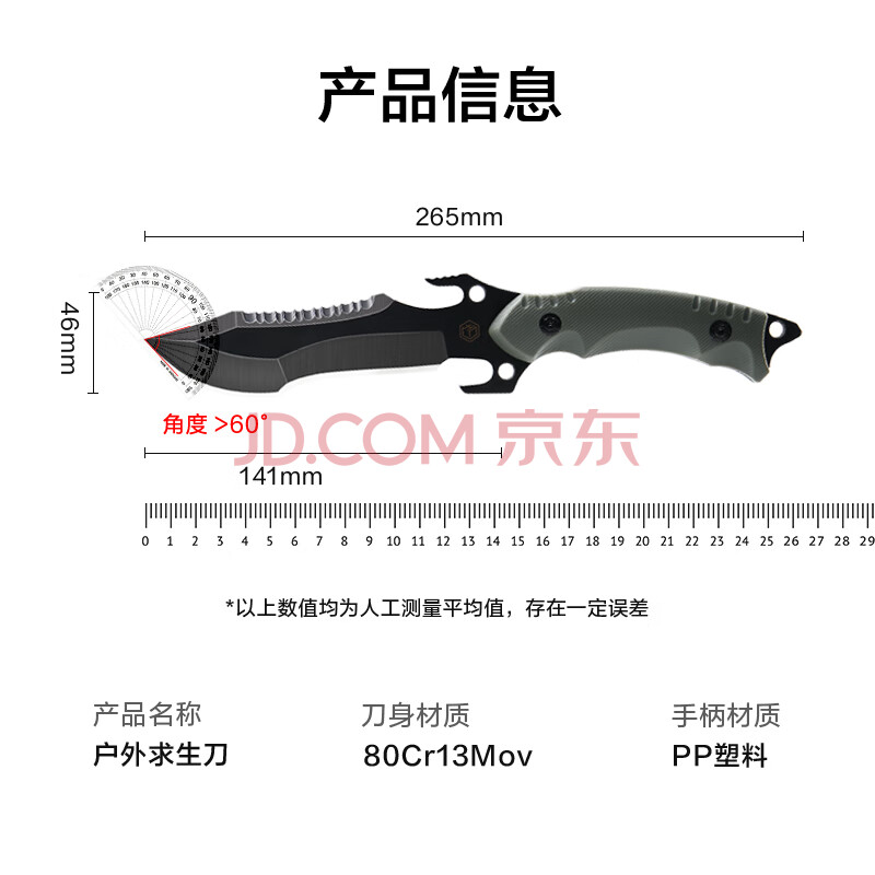 商品相册:京东京造 户外多功能刀求生刀 野外防身小刀不锈钢刀组合战术刀第1张/共9