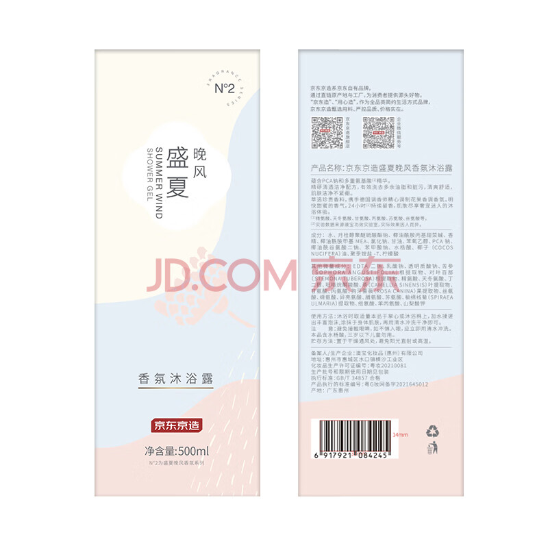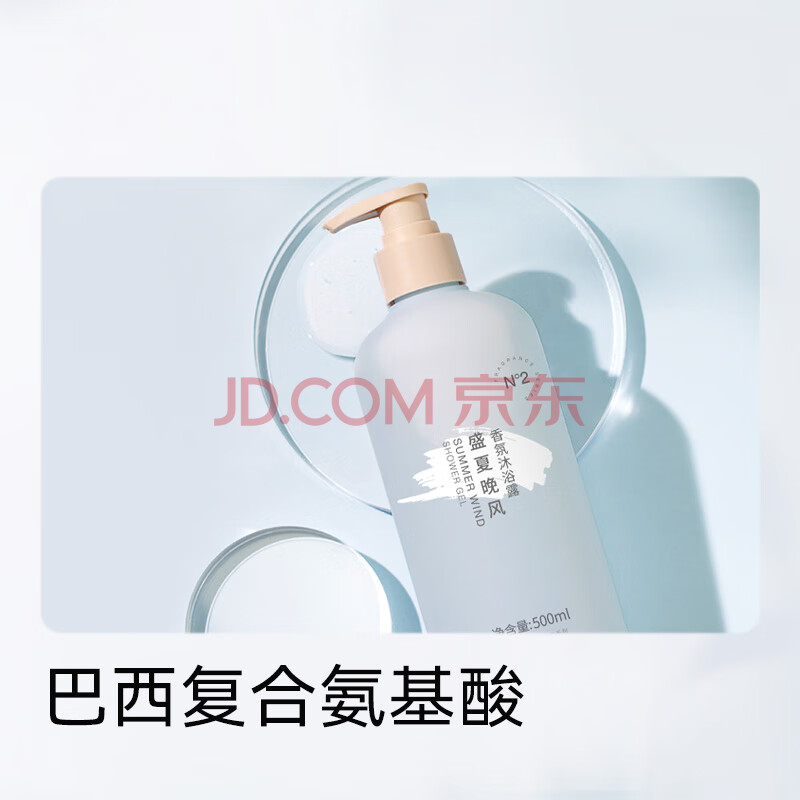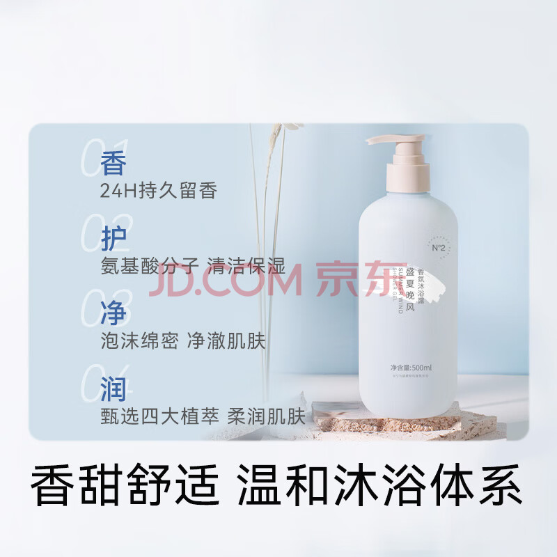 商品相册:京东京造 盛夏晚风香氛沐浴露500ml 持久留香 男女氨基酸清洁柔润保湿润肤第