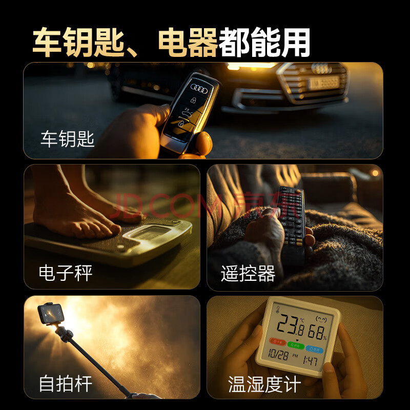 商品相册:京东京造 CR2032纽扣电池6粒装 3V锂电池 适用大众奥迪宝马奔驰等汽车钥匙手表遥控器电脑主板对讲机第