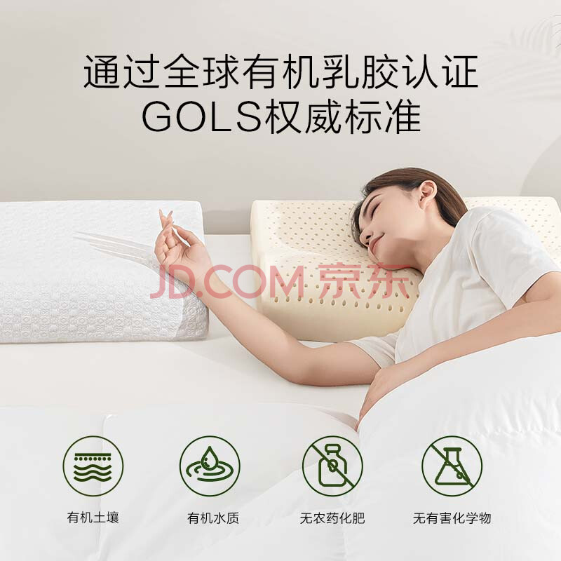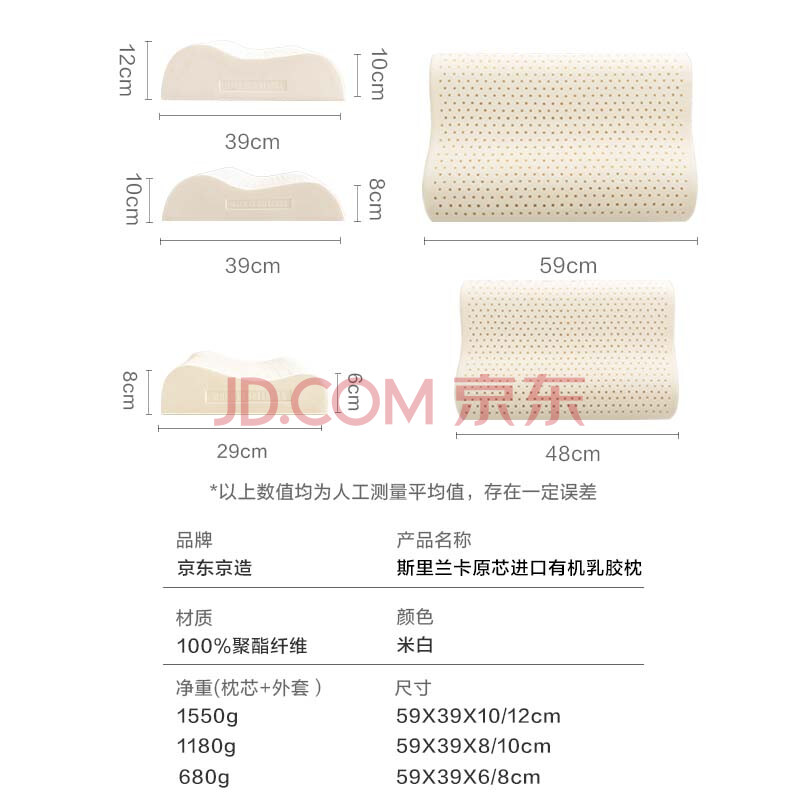 商品相册:京东京造 斯里兰卡进口天然有机乳胶枕 成人颈椎枕头 低款波浪枕8/10cm第