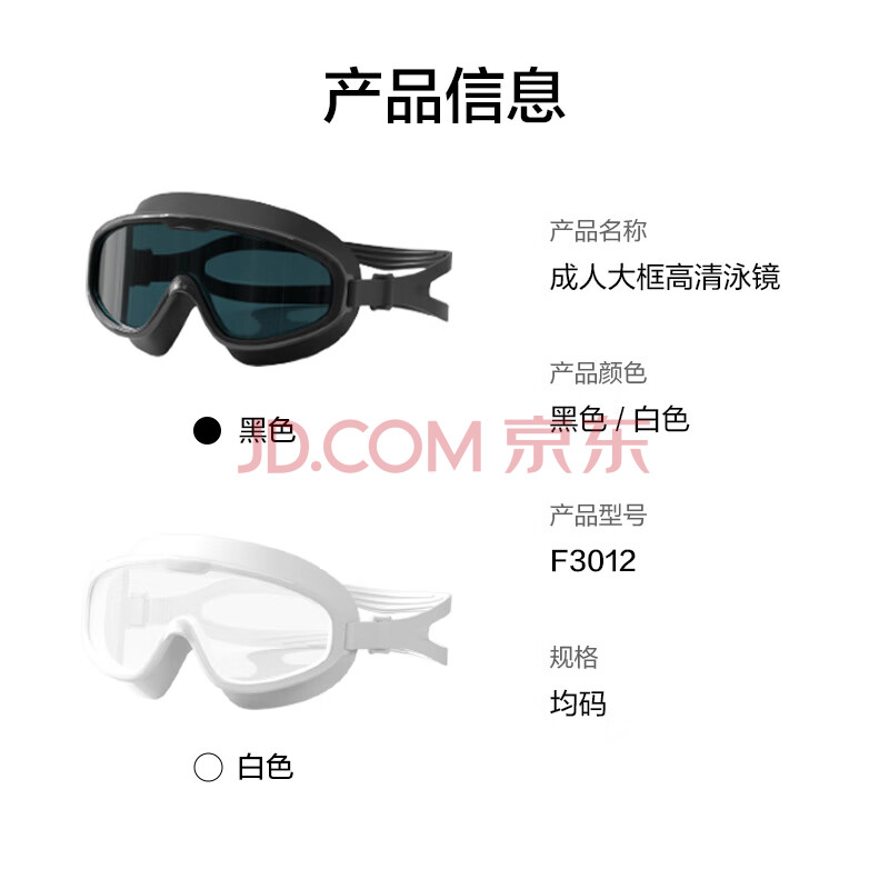 商品相册:京东京造 泳镜成人大框 游泳镜防雾防水高清游泳眼镜 男女潜水护目镜 炫白第