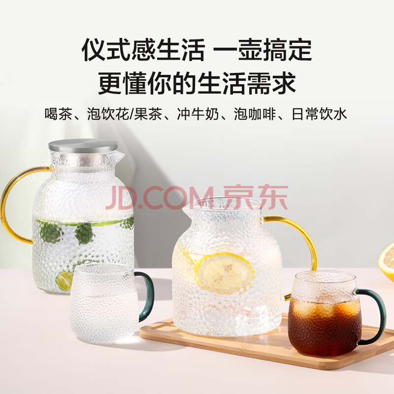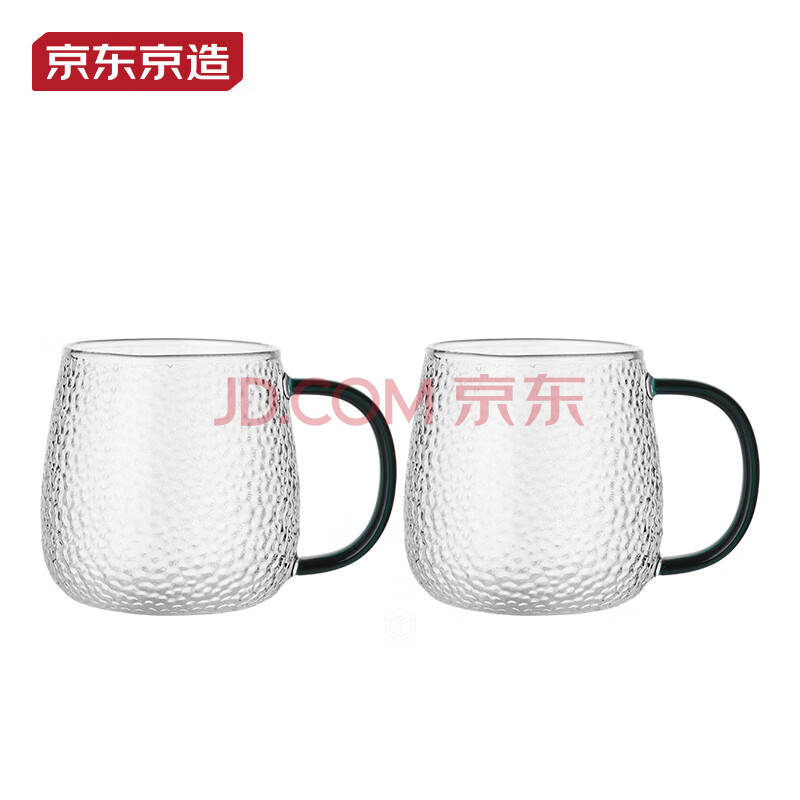 商品相册:京东京造 玻璃杯 耐热泡茶水杯子锤纹凉水咖啡杯300ml*2第