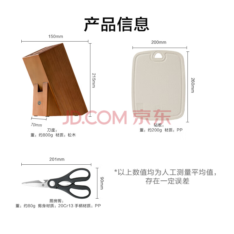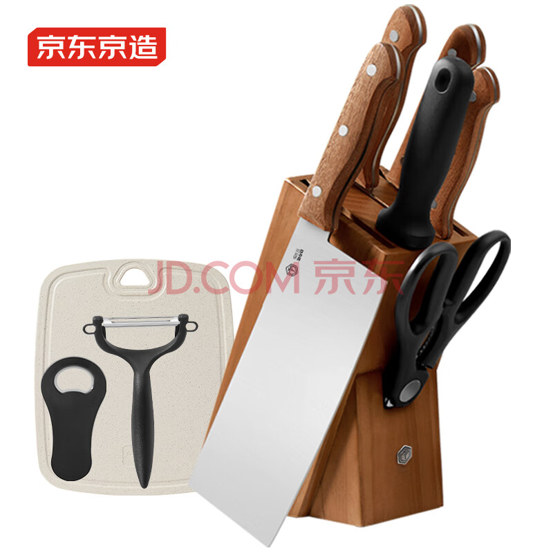 商品相册:京东京造 刀具全套 菜刀菜板厨房水果刀砍骨切片套装 乌檀木10件套第