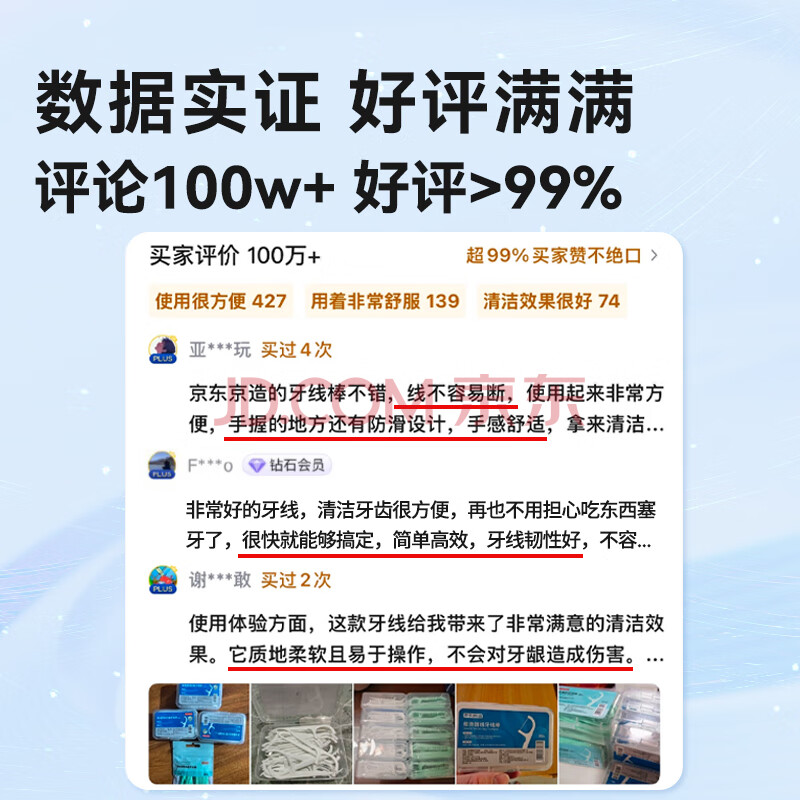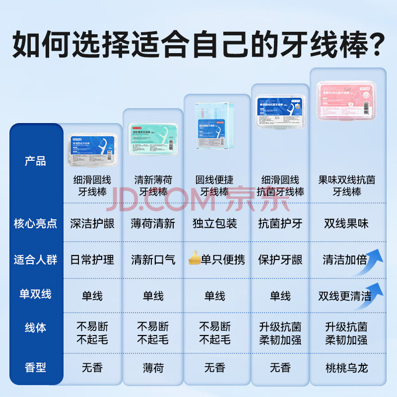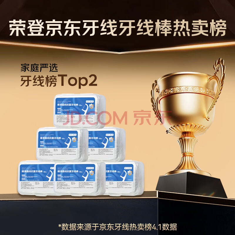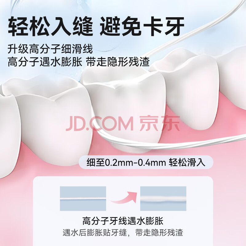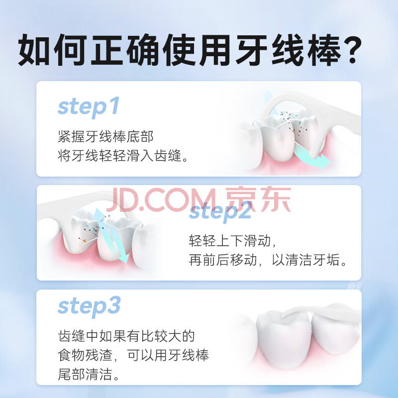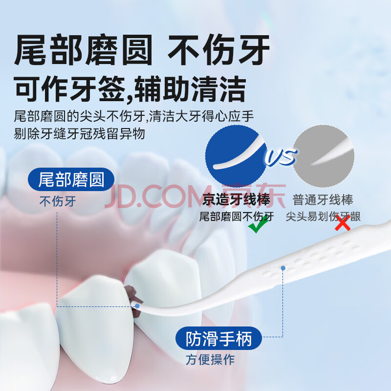 商品相册:京东京造抗菌细滑圆线牙线棒50支*6盒 剔牙牙签牙线棒(赠15支薄荷味)第