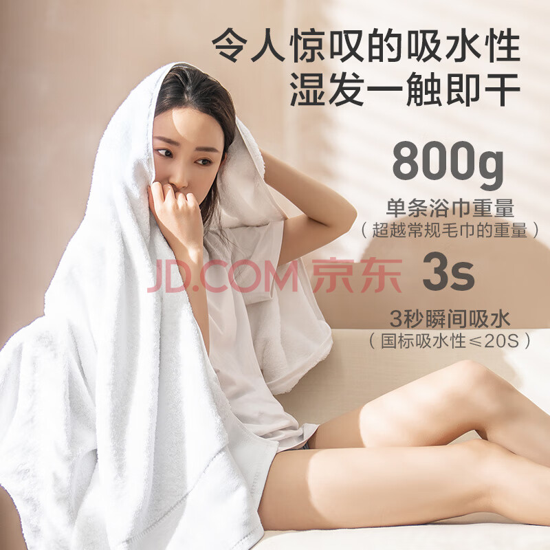 商品相册:京东京造 800g超厚臻柔浴巾 五星级酒店A类成人加大加厚浴巾 单条 臻白第