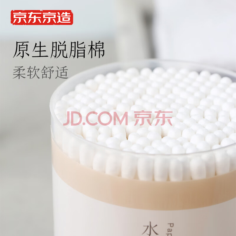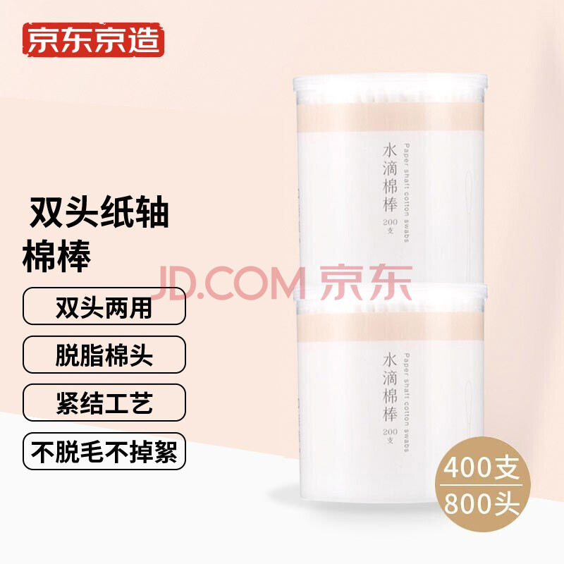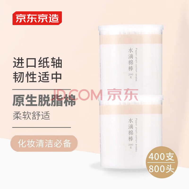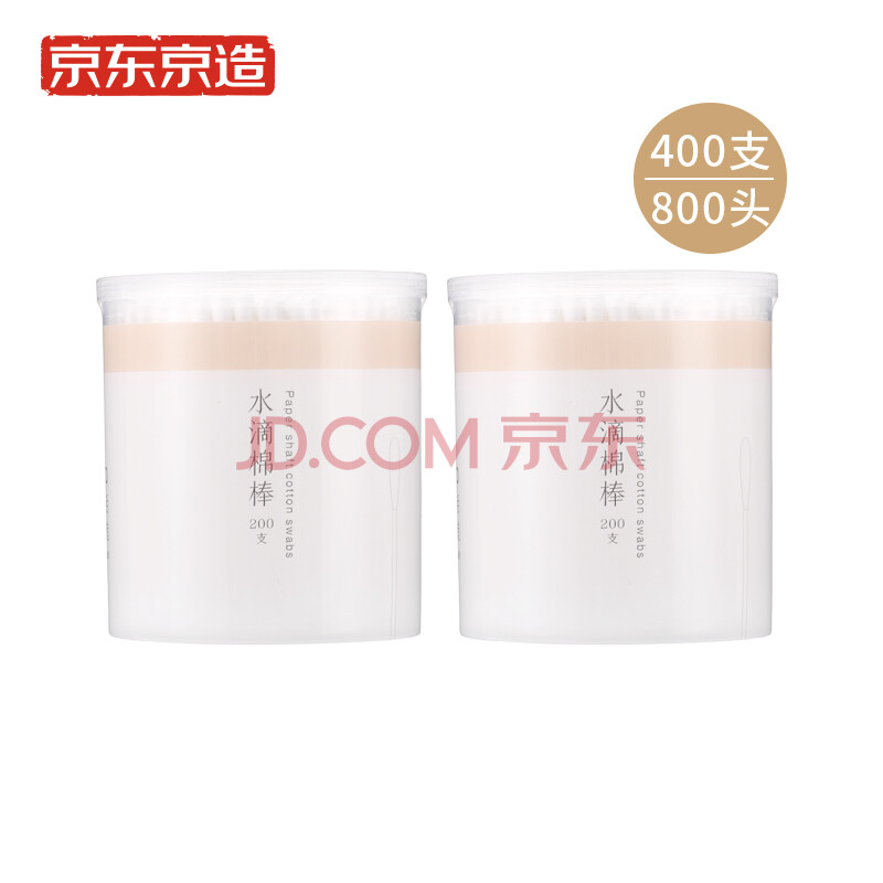 商品相册:京东京造 双头水滴棉棒 200支*2罐 掏耳朵棉签纸轴化妆棉签螺旋头清洁棉棒第