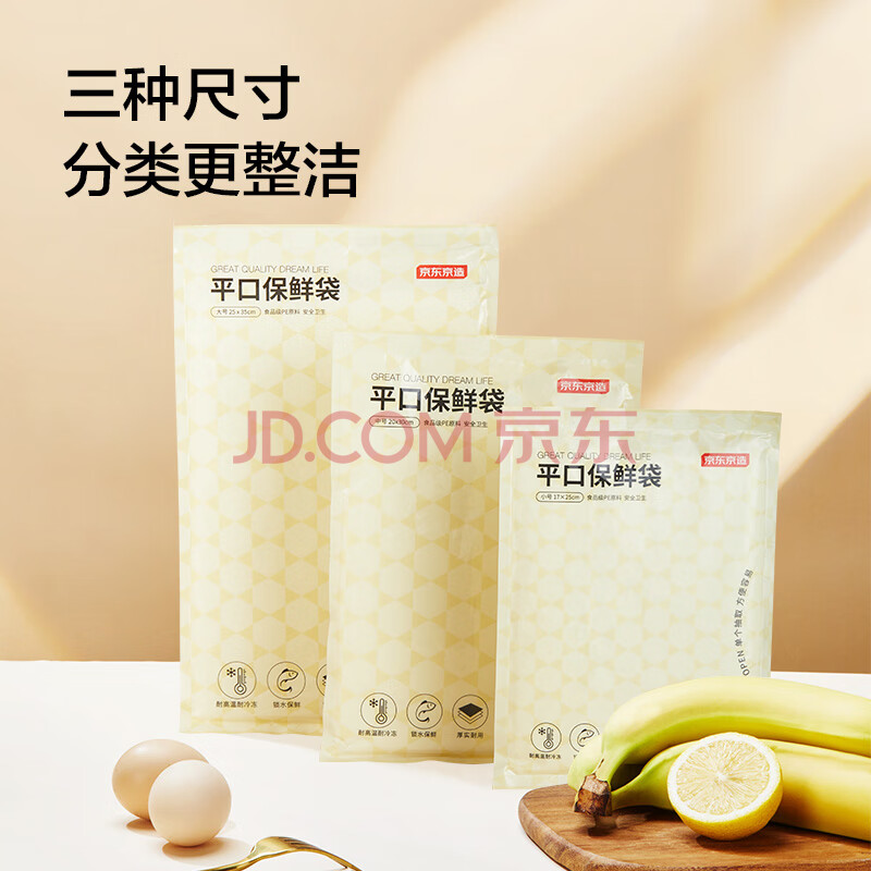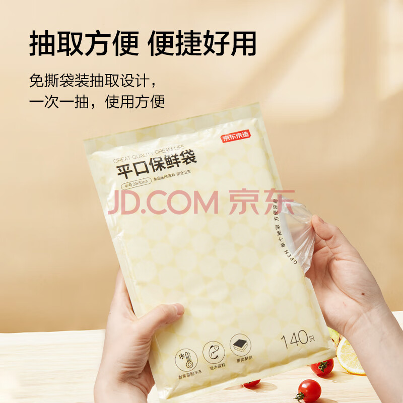 商品相册:京东京造 保鲜袋食品级组合装抽取大号100只中号140只小号200只【440只】第