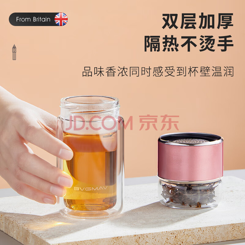 商品相册:宝威玛(BVGMAV)玻璃杯女茶水分离双层防烫玻璃水杯子高颜值泡茶杯高档礼品定制第