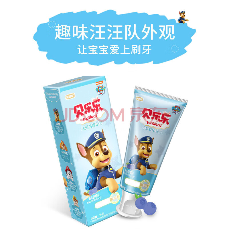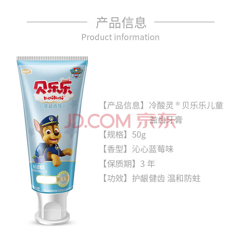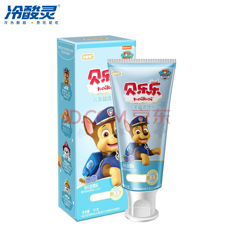 商品相册:冷酸灵贝乐乐儿童益齿牙膏50克 换牙期儿童2-12岁无氟牙膏 沁心蓝莓味第