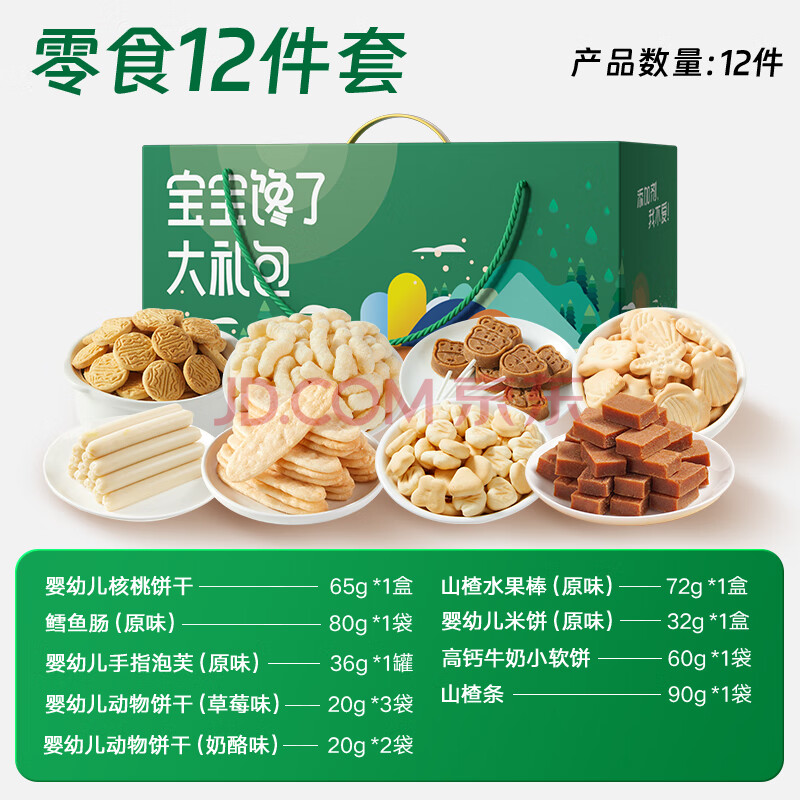 商品相册:宝宝馋了宝宝零食大礼包12件套山楂棒饼干奶片泡芙米饼儿童节日礼盒第
