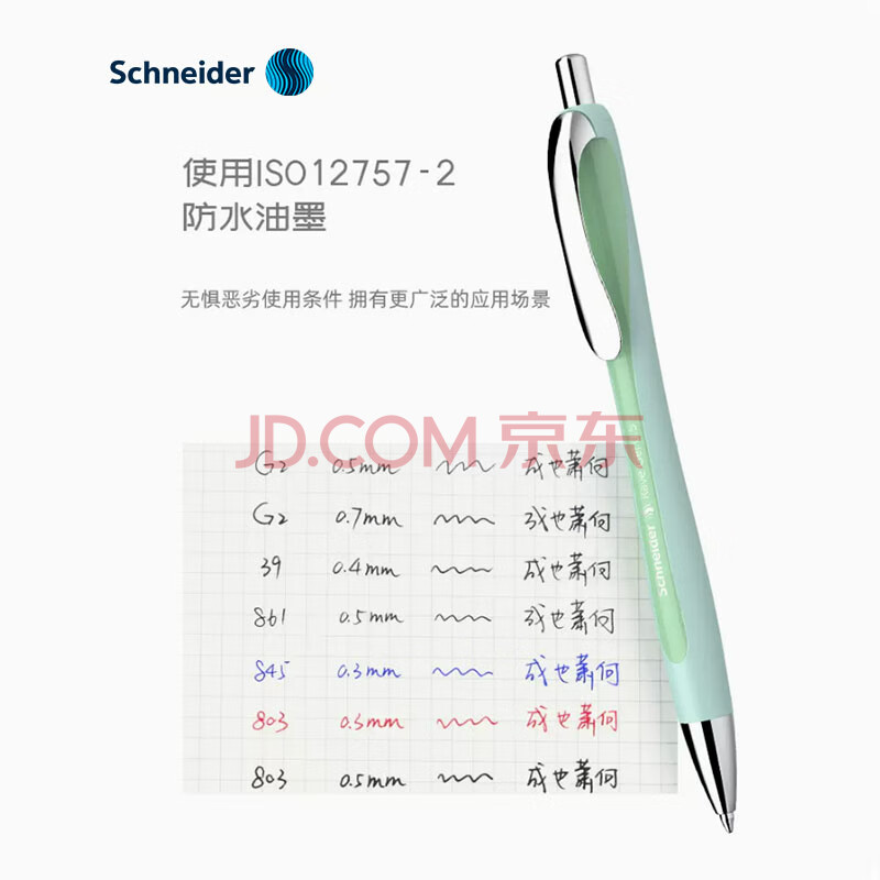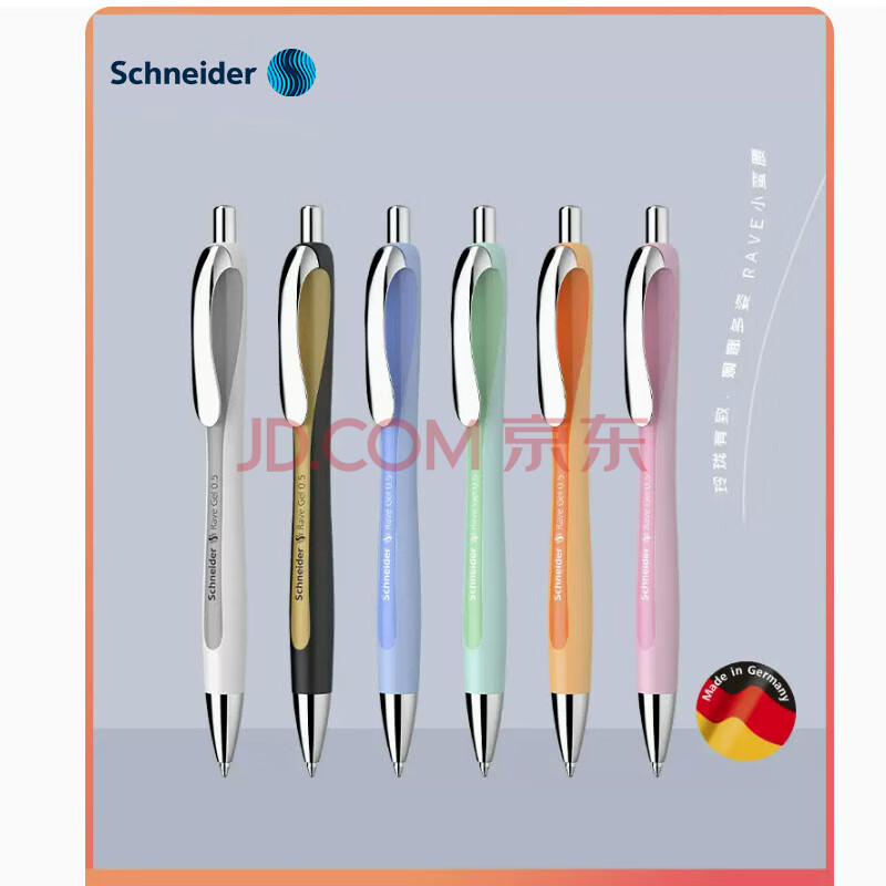 商品相册:施耐德中性笔0.5mm多姿Rave按动签字笔小蛮腰学生考试办公开学必备用水笔可换芯-苏打蓝102503第