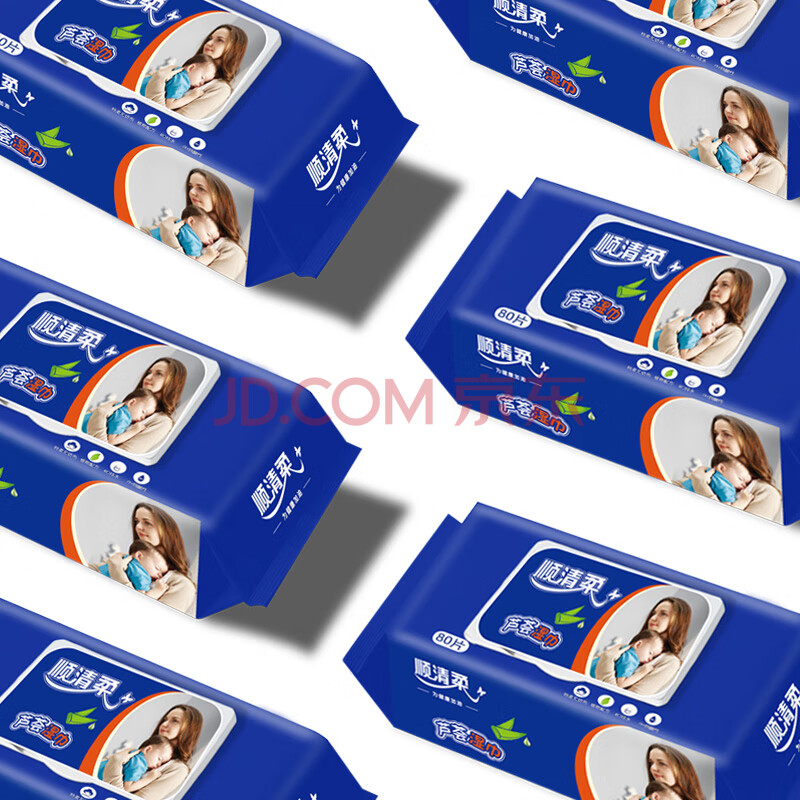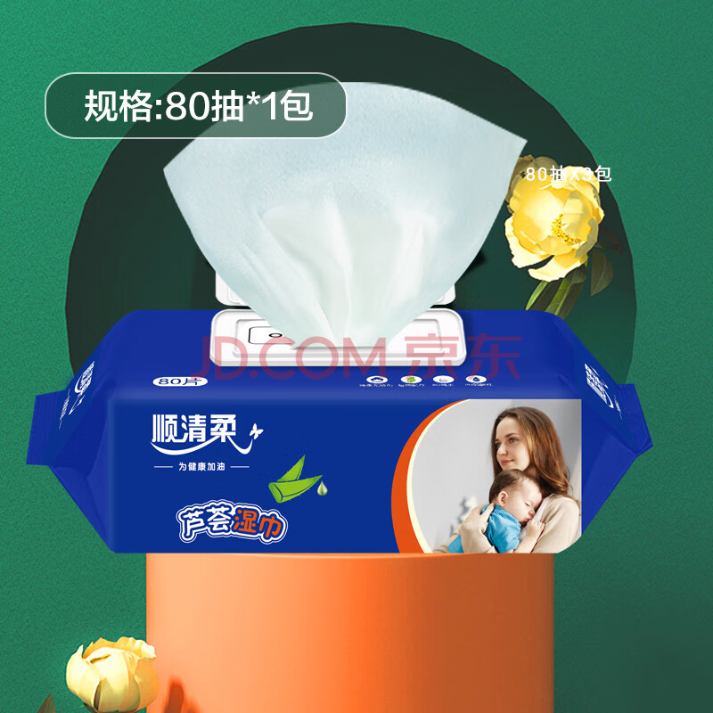 商品相册:顺清柔湿巾80片*1包 手口柔湿纸巾保湿清洁湿巾双盖密封无香单包装第