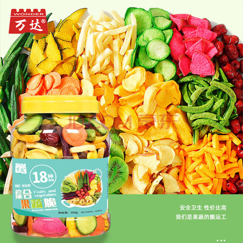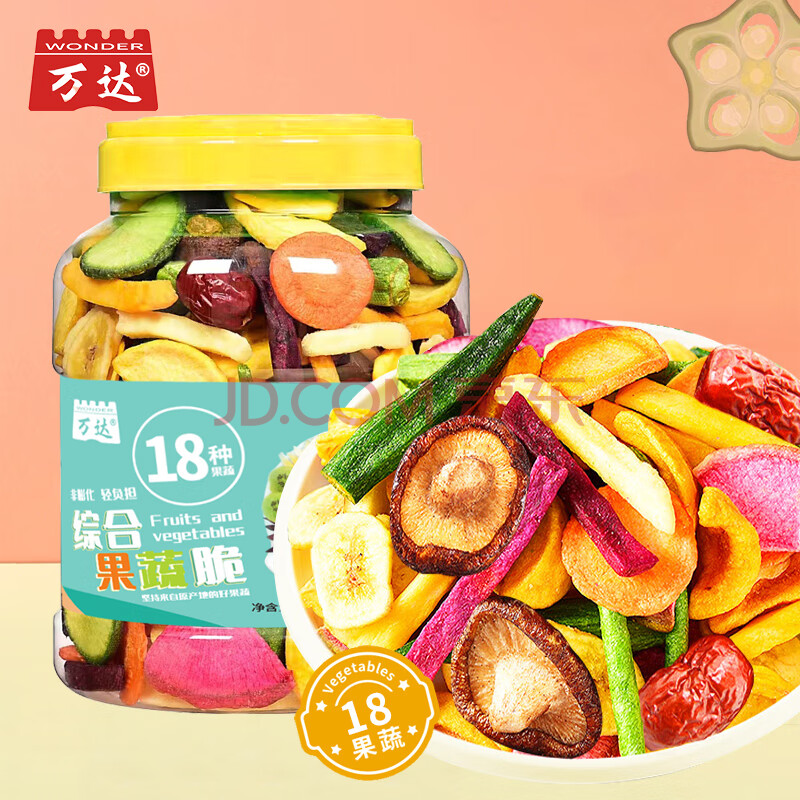 商品相册:万达果蔬脆500g/罐 18种配比蜜饯水果干休闲零食即食综合什锦蔬菜果脯第