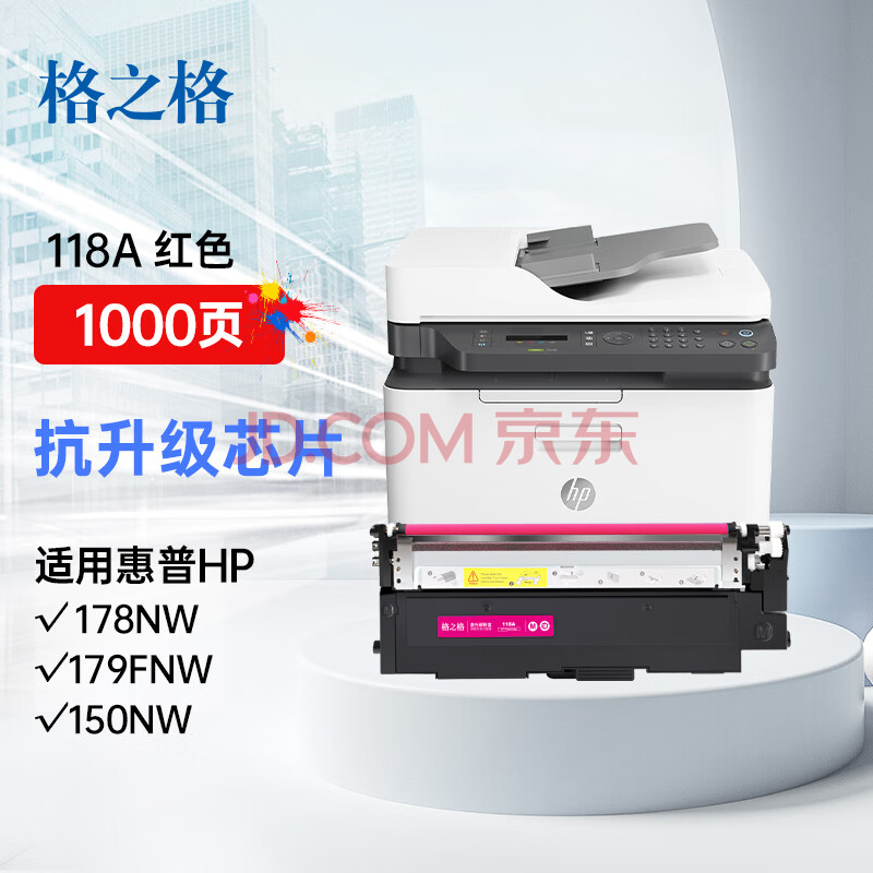 商品相册:格之格118a硒鼓适用惠普178nw粉盒 hp179fnw硒鼓 150a 150nw 150w打印机墨盒 w2080a 118a粉盒红色抗升级芯片第