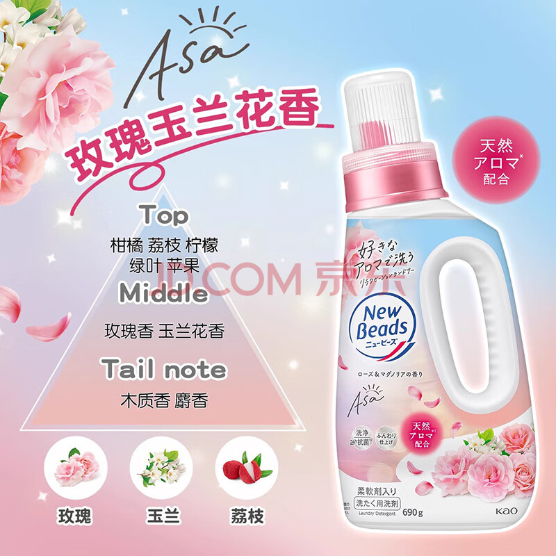 商品相册:花王(KAO)玫瑰洗衣液1.81kg 持久留香抗菌强效去渍深层洁净含柔顺护色第
