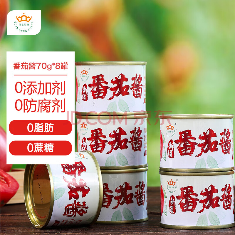 商品相册:冠农股份新疆番茄酱罐头70g*8罐 番茄膏0防腐剂 西红柿意面薯条蘸料调味酱第