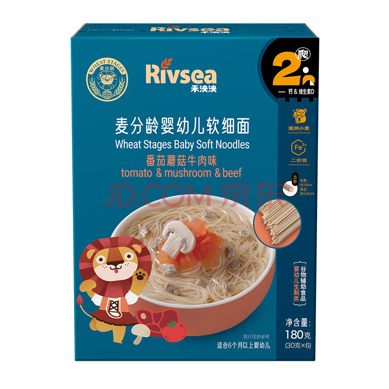 商品相册:禾泱泱婴幼儿软细面番茄蘑菇牛肉味180g 钙铁锌麦分龄面条6月+第