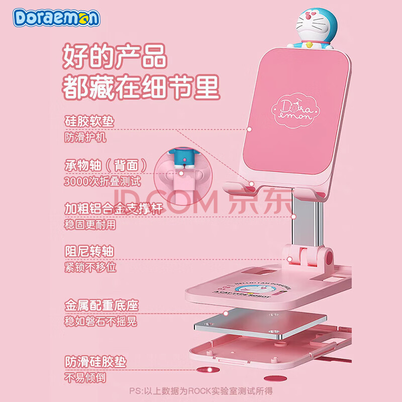 商品相册:ROCK 哆啦A梦手机支架桌面平板懒人直播游戏吃鸡网课追剧多功能小巧粉折叠便携可升降调节带公仔款第