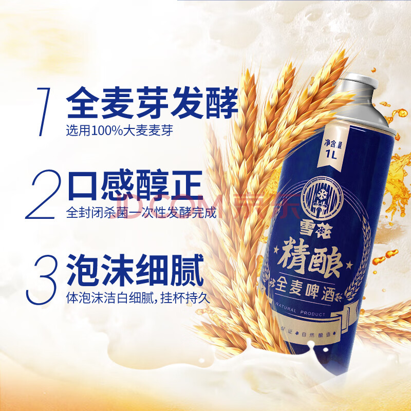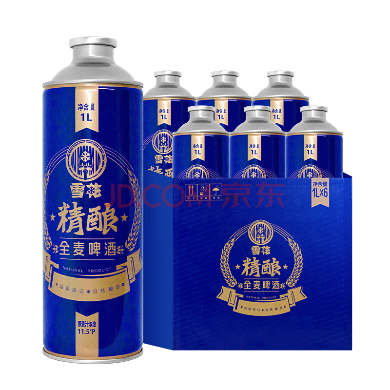 商品相册:雪花啤酒(Snowbeer)全麦精酿11.5度1L*6罐 全麦酿造大容量 京东自营第