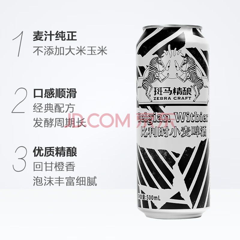 商品相册:斑马精酿比利时小麦白啤精酿啤酒 国产精酿啤酒 500ml*12听整箱装送礼第