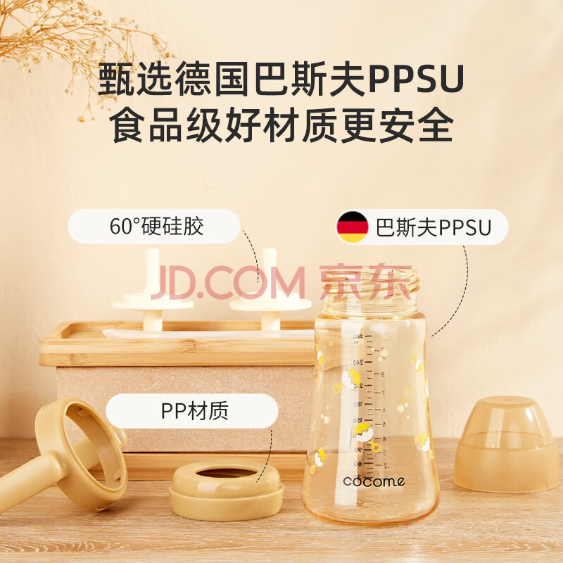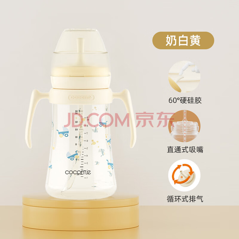 商品相册:可可萌直饮奶瓶吸管ppsu2岁以上大宝宝耐咬直吸式奶瓶3-6岁280ML奶白黄第