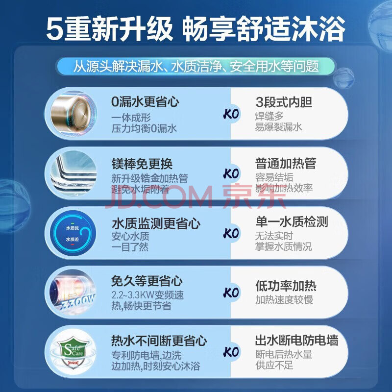 商品相册:海尔(Haier)电热水器80升 PD5 金刚无缝胆 水电分离 3300W变频速热节能 终身免换镁棒 家用储水式第