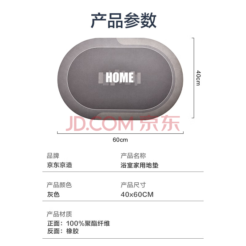 商品相册:京东京造 科技绒地垫 卫生间浴室吸水防滑脚垫子 灰色60*40cm第