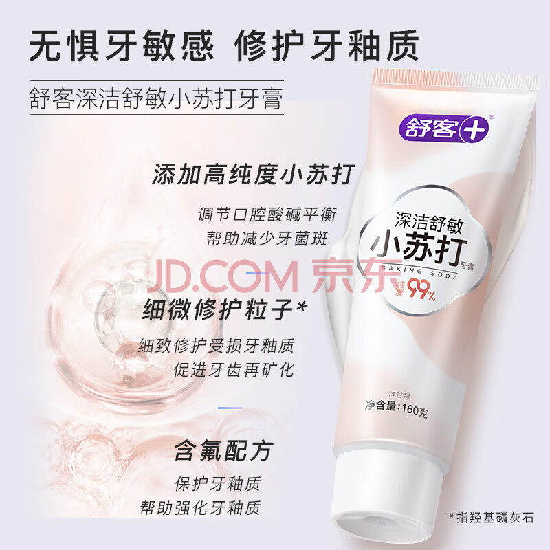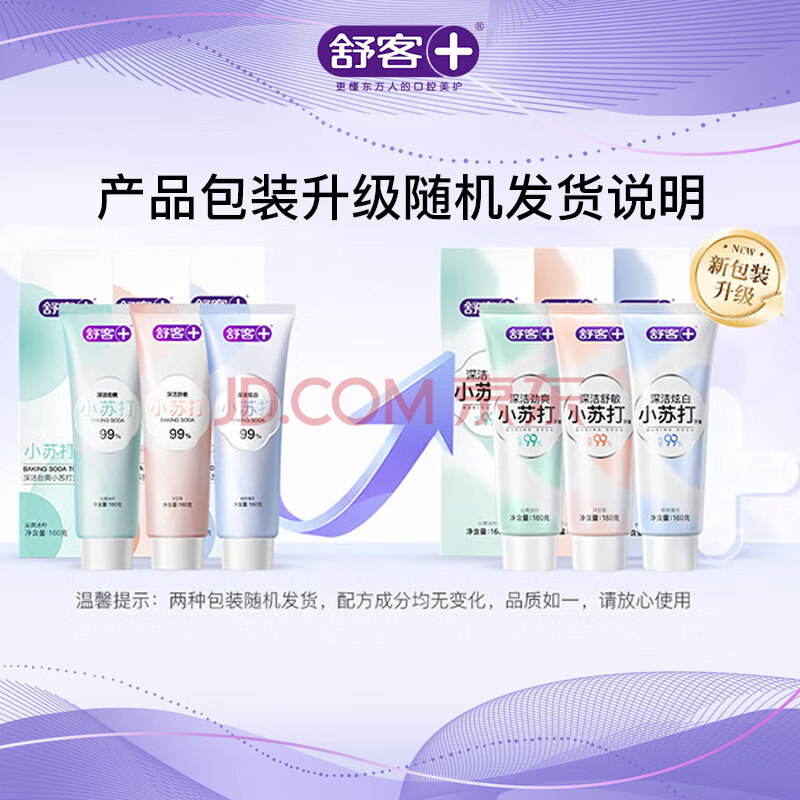 商品相册:舒客小苏打牙膏 美白牙齿减轻口臭含氟防蛀 3支共480g薄荷味 新老随机第