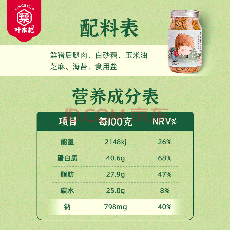 商品相册:叶家记芝麻海苔猪肉松 118g 无添加儿童营养肉松寿司专用罐装碎拌饭料第