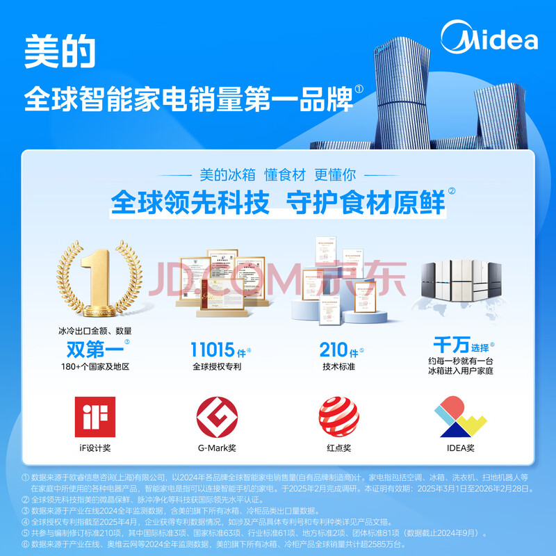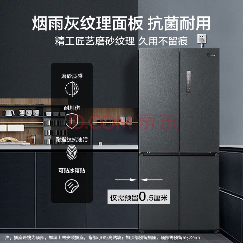 商品相册:美的(Midea)485L十字门冰箱60厘米纯平全嵌全空间养鲜一级能效风冷无霜底部散热BCD-485WSPZM(E)第