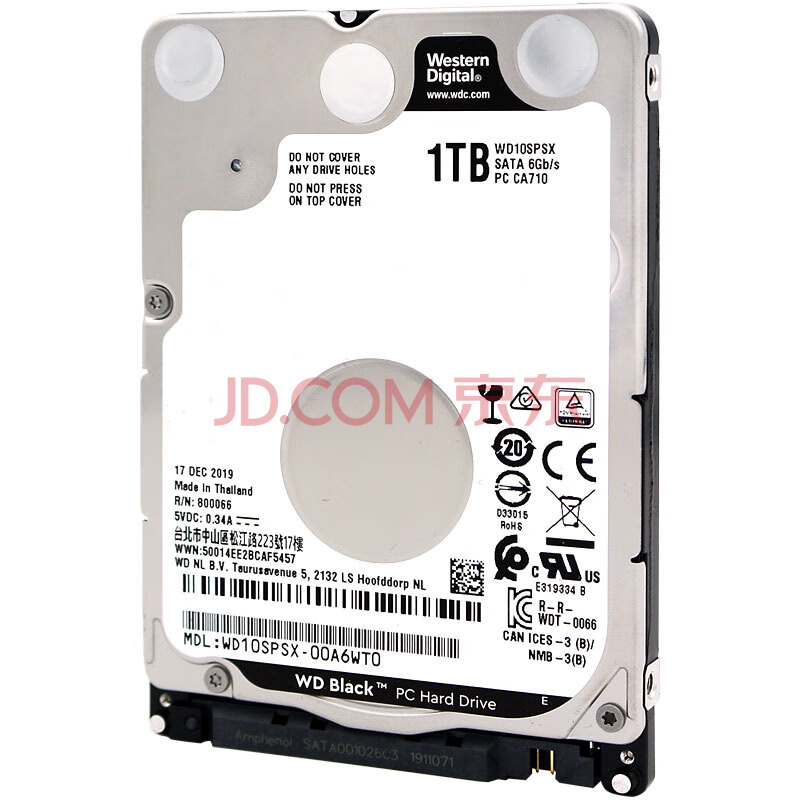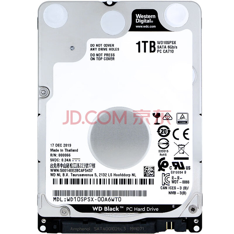 商品相册:西部数据(WD)1TB 笔记本游戏机械硬盘 WD_BLACK 西数黑盘 SATA 7200转64MB 2.5英寸WD10SPSX第