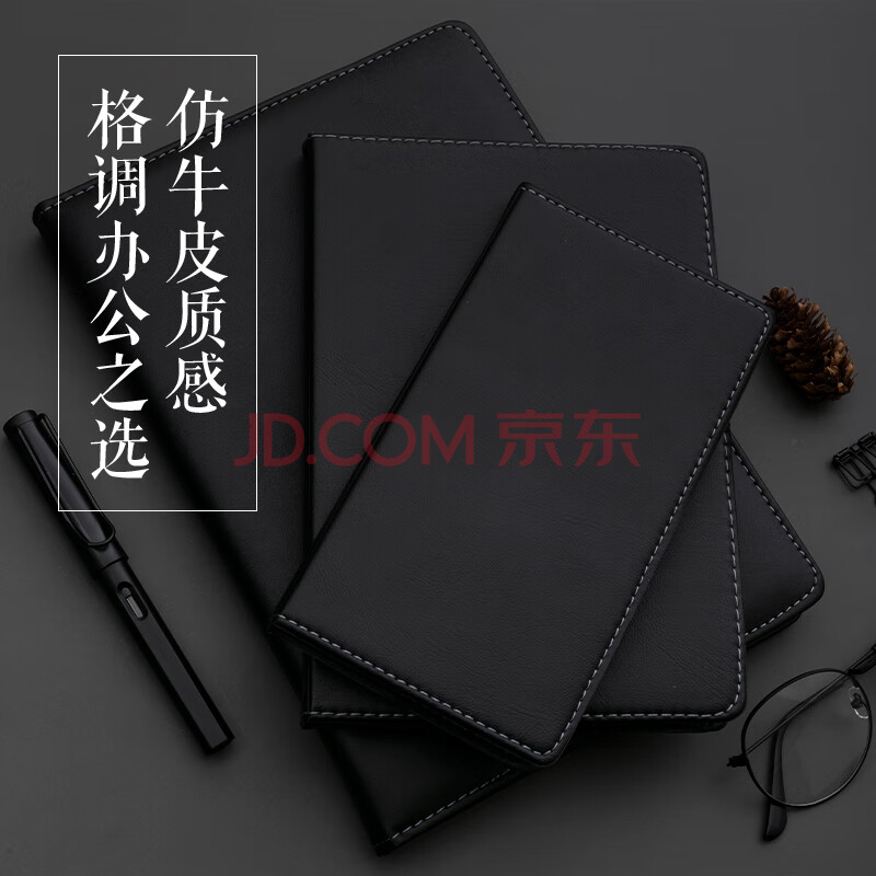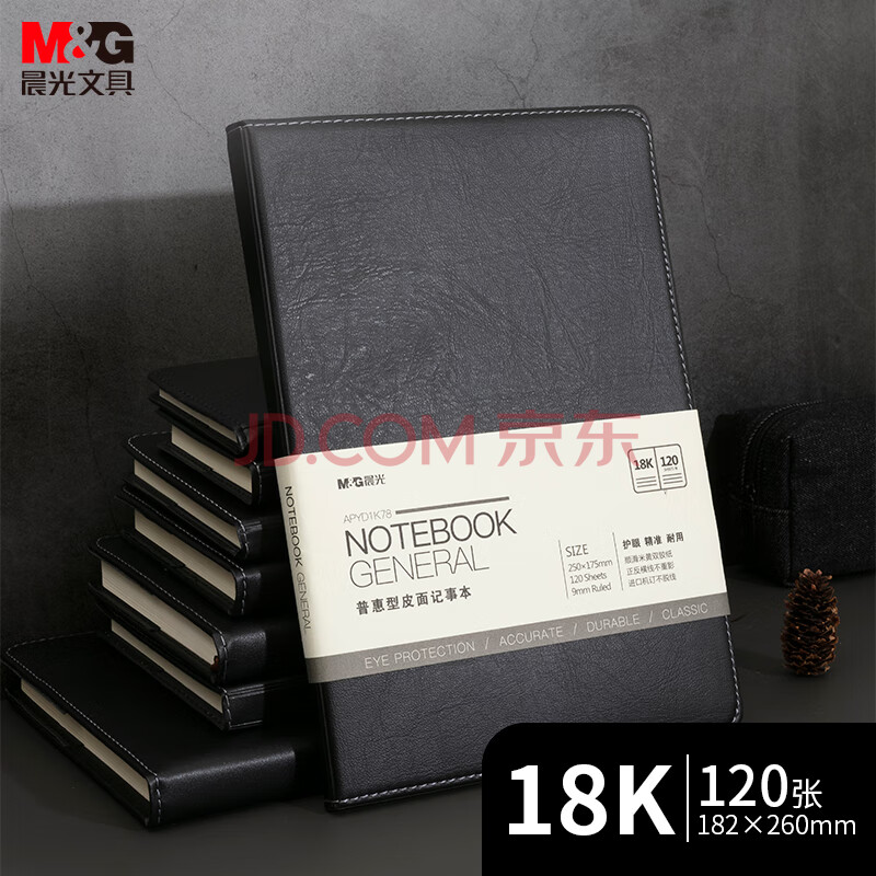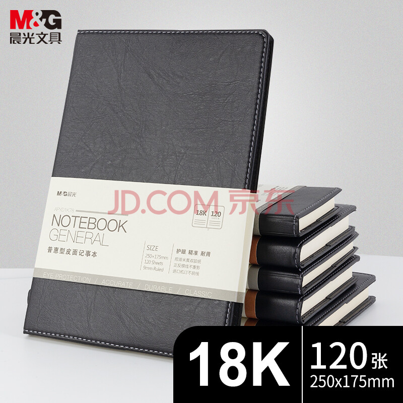 商品相册:晨光(M&G)黑色软皮革面笔记本本子开会办公用品会议记录本日记本记事本商务18K 120张单本APYD1K78第