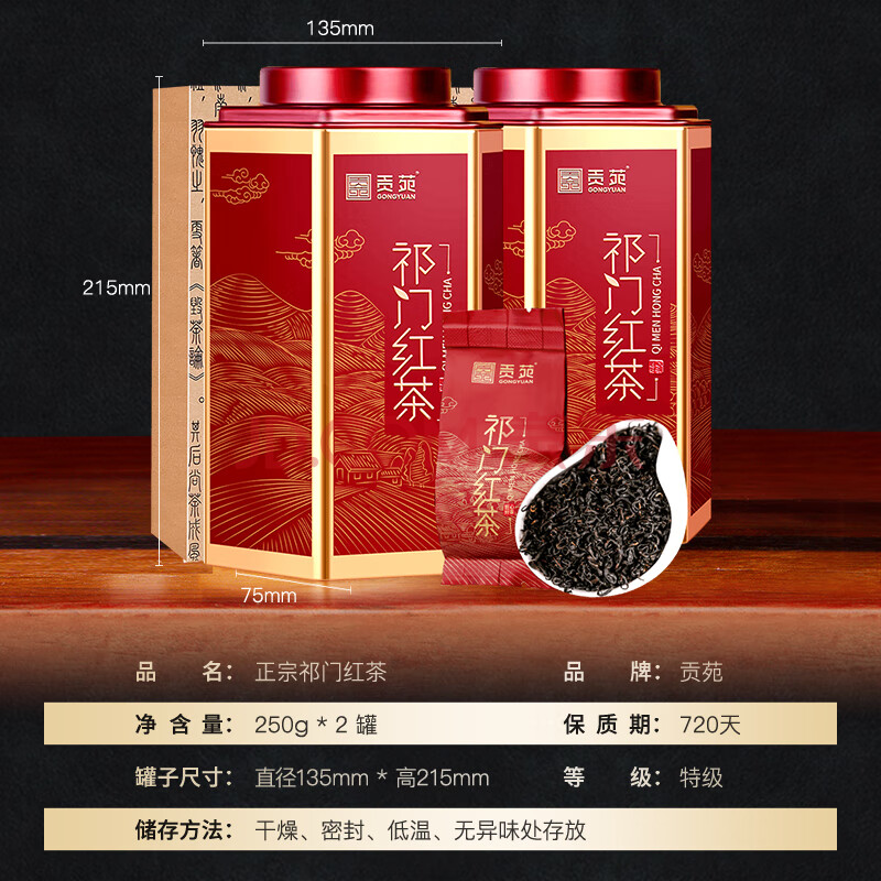 商品相册:贡苑红茶安徽祁门红茶特级250g*2罐礼盒装正宗功夫茶叶自己喝送长辈第