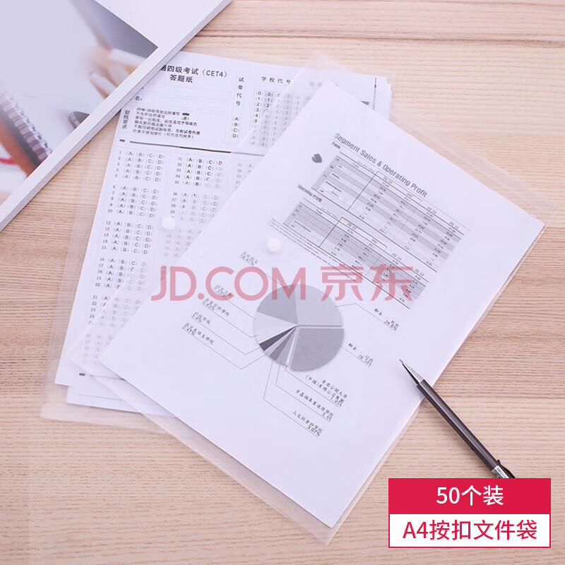 商品相册:得力(deli)50只A4透明文件袋 按扣资料袋文件保护票据收纳塑料档案袋学生试卷收纳袋 办公学习用品 27701第