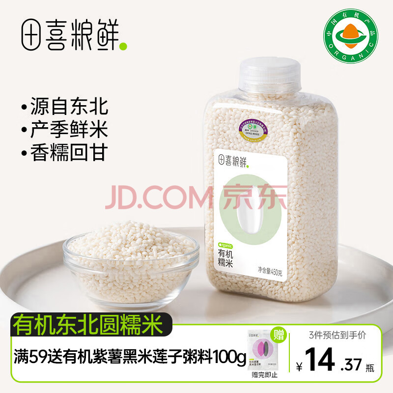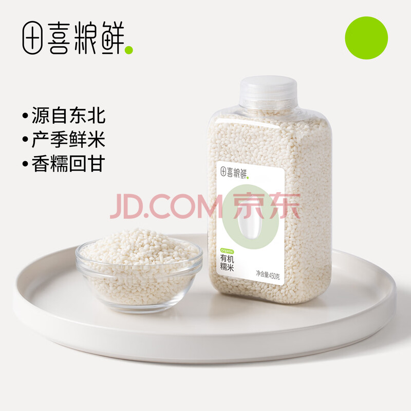 商品相册:田喜粮鲜有机圆粒糯米东北圆糯米江米黏米白糯米粽子米粘豆包粥米伴侣450g第