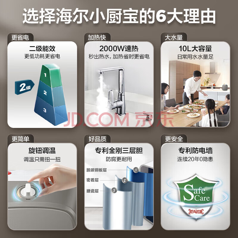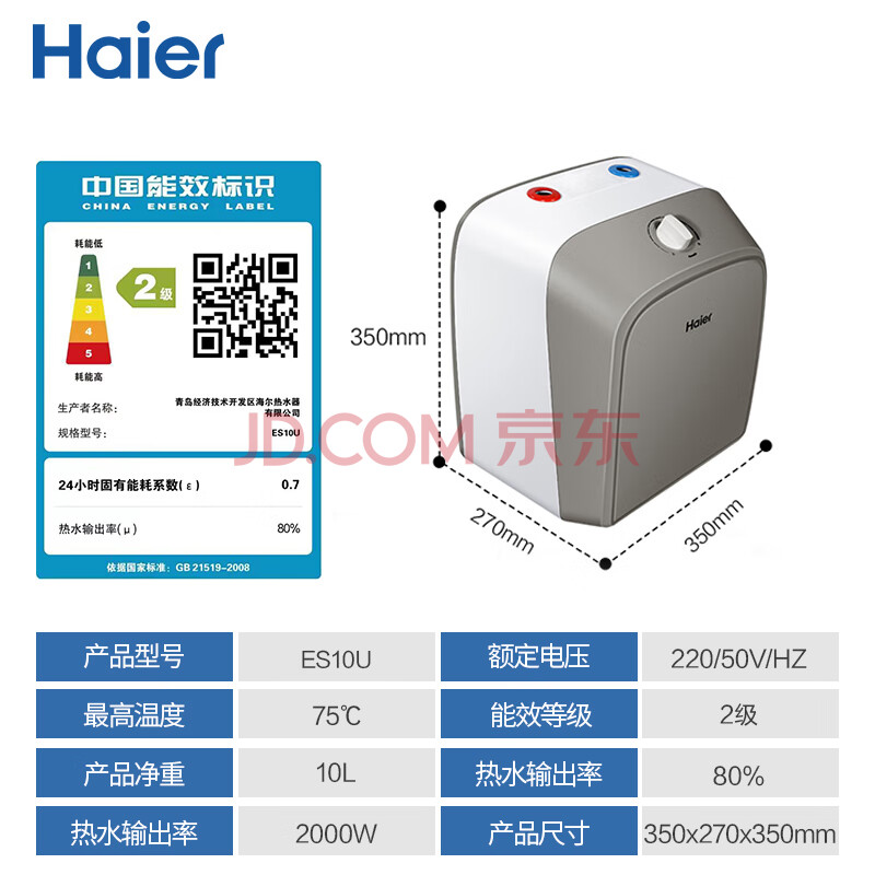 商品相册:海尔(Haier)10升大水量小厨宝电热水器 储水式家用厨房热水宝2000W速热节能保温小尺寸 台下安装ES10U第