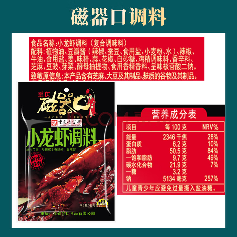 商品相册:磁器口 麻辣小龙虾调料香辣虾调料180g干锅香锅底料毛血旺冒菜串串香第
