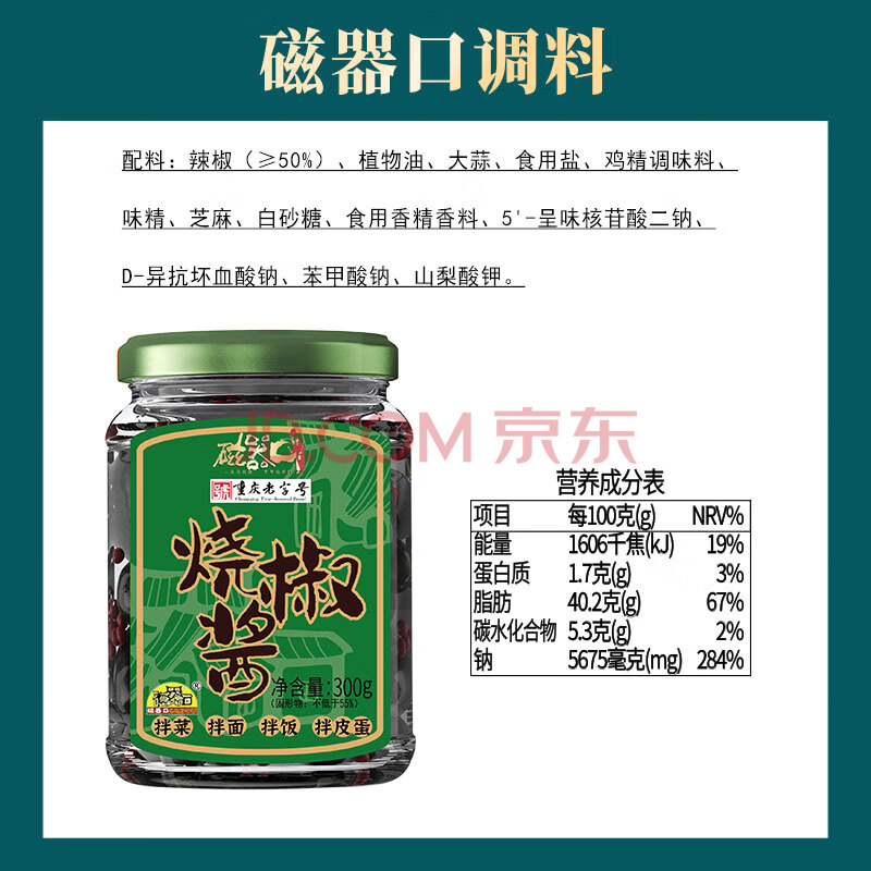 商品相册:磁器口 烧椒酱下饭菜辣椒酱300g农家风味炭火烤制第