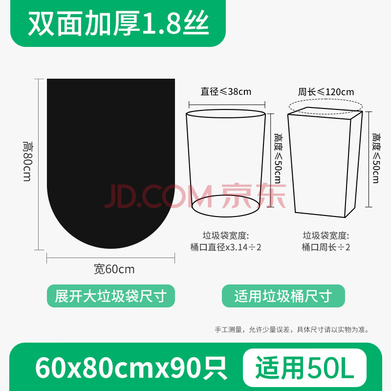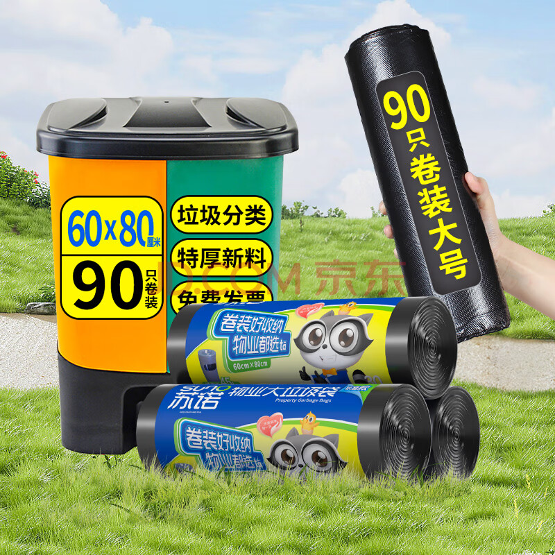 商品相册:苏诺平口式垃圾袋黑色60*80cm*90只单面0.9丝卷装物业商用家用大号第